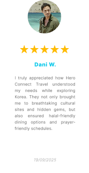 Travel with complete peace of mind. We specialize in creating the perfect Muslim-friendly Korean journey, guiding you to the best halal restaurants, Muslim friendly hotels, convenient prayer spaces, and culturally respectful activities.