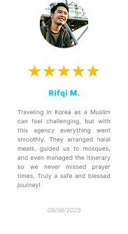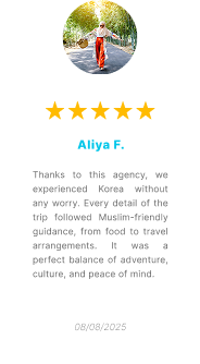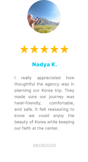 We provide and manage Halal experience spots in Korea, offering Muslim-friendly destinations, restaurants, prayer facilities, and cultural activities. As a travel agency specialized in Korean trips, we ensure Muslim travelers can enjoy a comfortable and worry-free journey while exploring the beauty of South Korea.